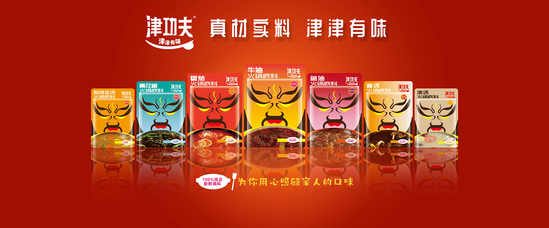 廣東津功夫食品有限公司,位于廣東省肇慶市國家高新區,占地面積約2.5萬平方米,是以專業研發、生產、銷售復合調味品及火鍋底料為主的現代化食品企業。      "津功夫"為公司注冊商標。公司擁有四大調味品專用生產車間及國內領先的生產工藝;裝備有反應釜、電磁炒鍋、天然氣炒鍋、蒸煮生產線、各型號全自動包裝機、冷封生產線等先進生產設備,年生產能力達2萬噸;配備有微檢、重金屬、金檢、水分、折光等檢測設備。        公司依照國家食品安全法,采用GMP及ISO管理標準,已先后通過ISO-22000質量管理體系認證、HACCP認證。        公司研發團隊由公司創始人親自帶隊,立足當下,不斷創新,將在調味品行業20余年的潛心研究成果變為現實,精品輩出,為客戶創造更多、更好的價值。公司以川味調味品為根,以客戶需求為本,開發了復合調味品及火鍋底料兩大板塊的系列產品。復合調味品板塊涵蓋: